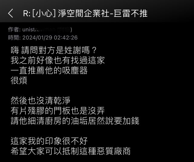 標題Re: [小心] 淨空間企業社-巨雷不推
