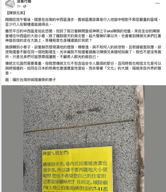 → minoru04: 陣頭會叫你不爽滾出台南 可是陣頭自己才是外地來的 01/31 16:42