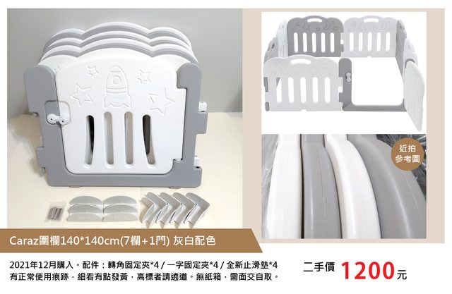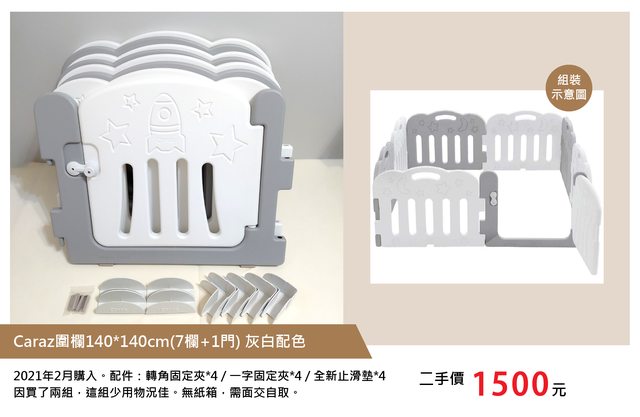 ①Caraz圍欄140*140cm(7欄+1門) 灰白配色