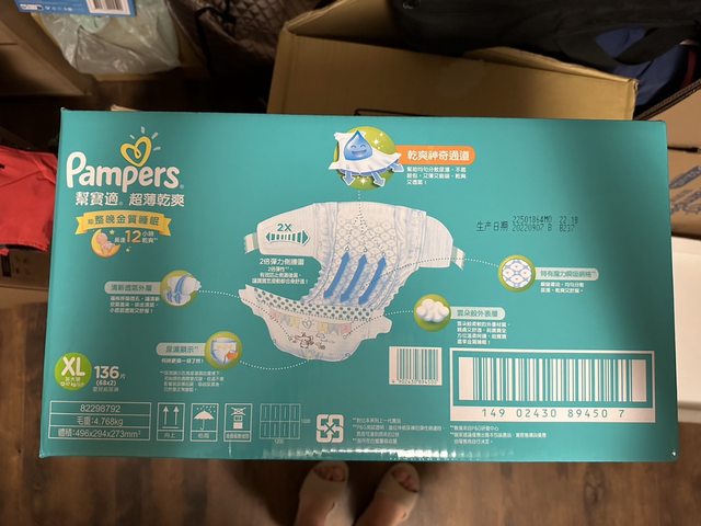 超薄乾爽 黏貼型 XL (彩盒箱)136片一箱,售850