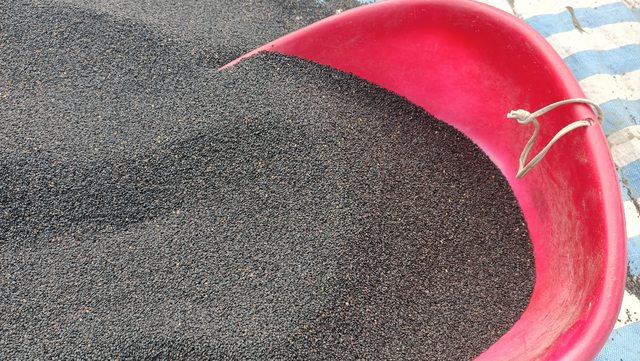 種的芝麻因為下雨幾乎全數陣亡,爸爸又請人全部翻土重種,導致第二批芝麻收成晚了一