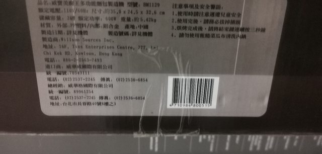 1. Kaiser威寶製麵包機 / 800
