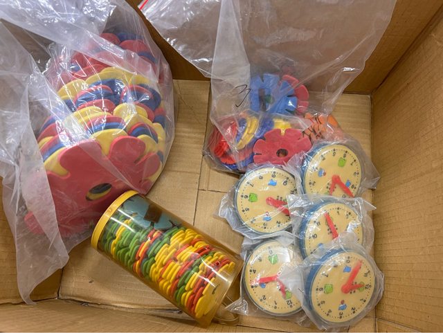 贈送教具一批如下:大小花片和小時鐘