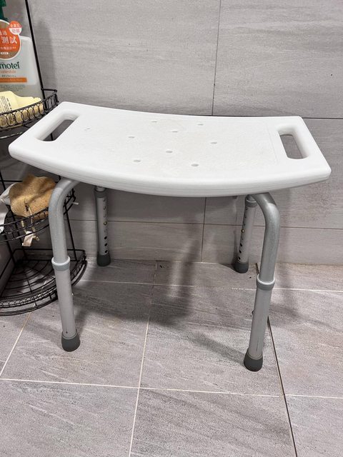 當初懷孕的時候買來洗澡時候坐的,可調節高度,久放在浴室置物,有一些水痕與使用痕跡,反應在價格,在意者自行清洗。