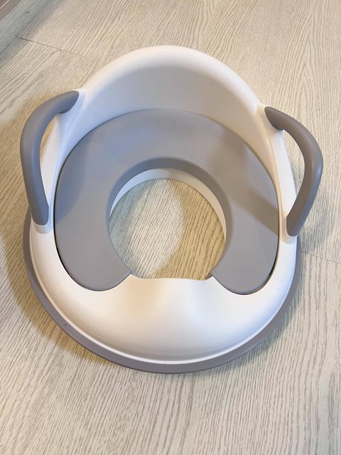 全新,僅試放在馬桶上,這個需放在全平面的馬桶座上使用,我家馬桶背後有突起不合