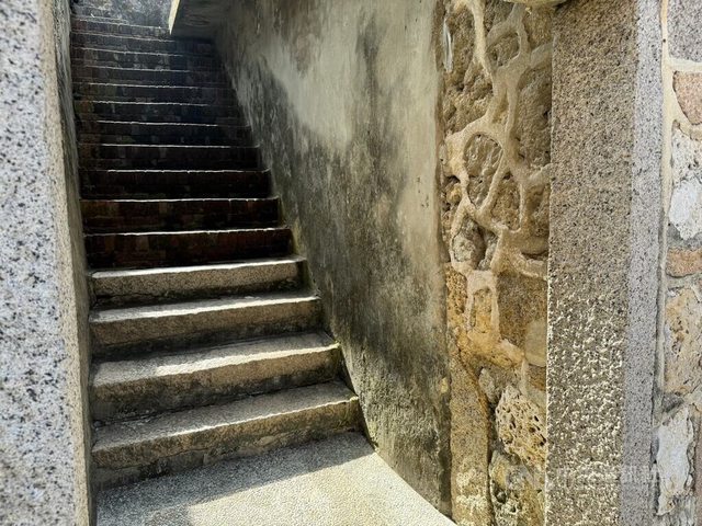 國定古蹟巽方砲台內部空無一物,只有幾扇透光的孔洞,面向拱門右側有階梯登上砲台頂