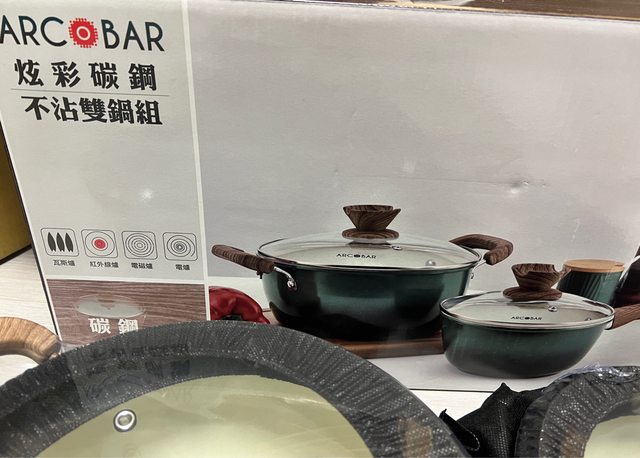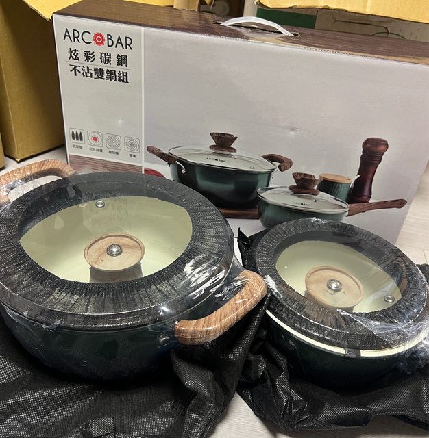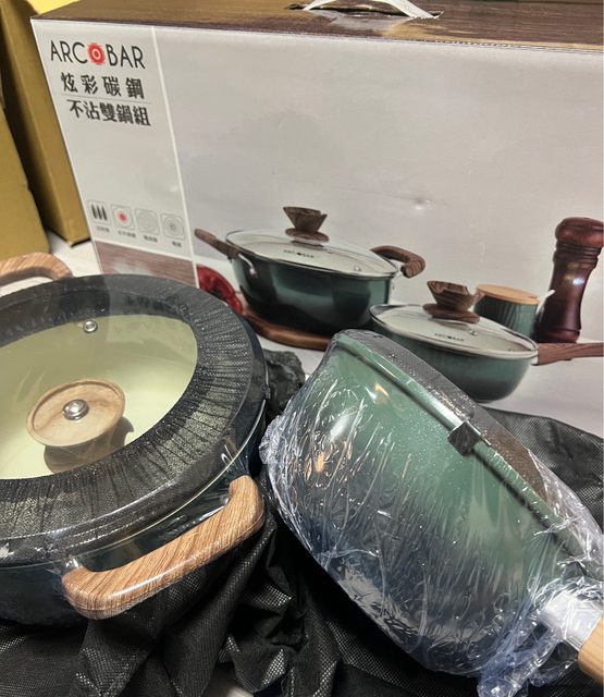 7.全新Arcobar 炫彩碳鋼不沾雙鍋組$1500