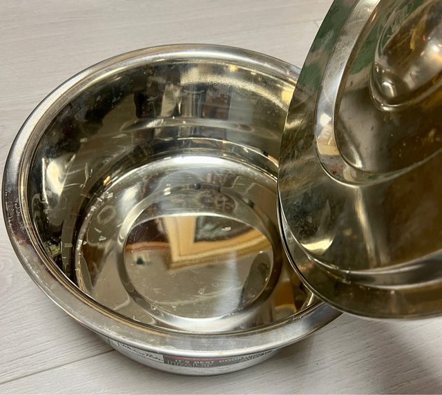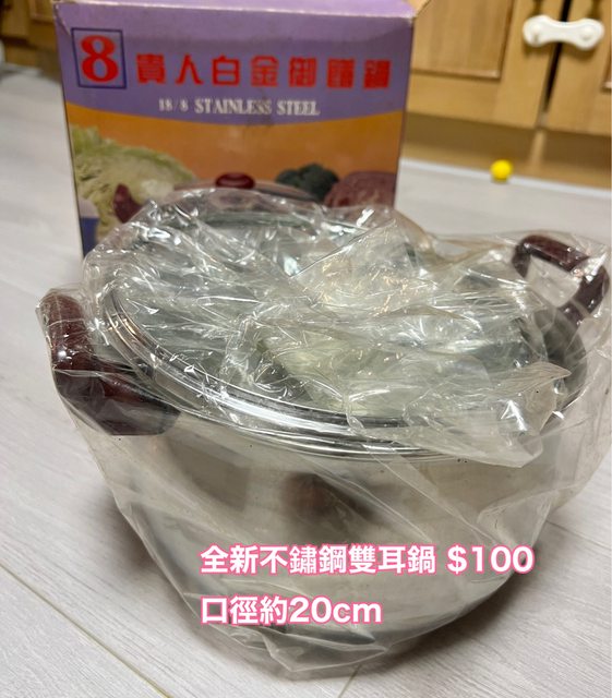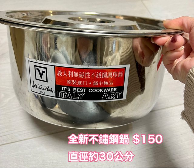 (售出)1.全新不鏽鋼鍋附蓋$150(直徑約30cm)