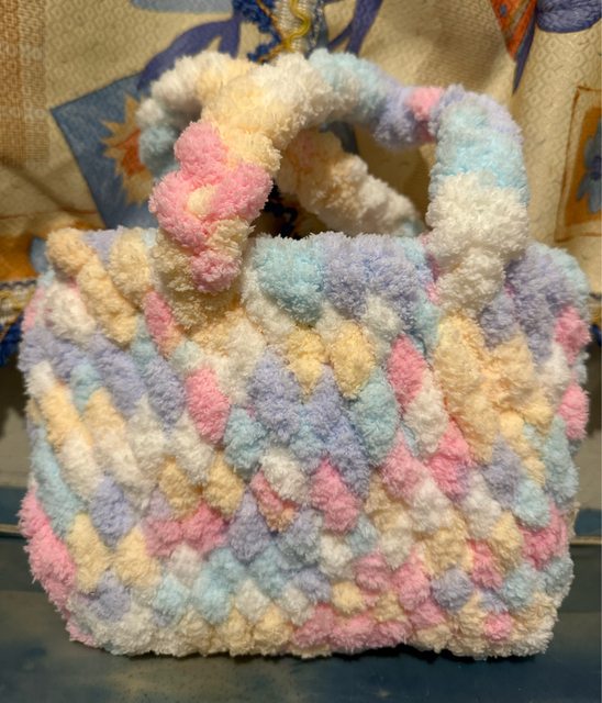 1. 毛毛包為自己手作,裝東西底不會鬆鬆的,是個很紮實的編織。