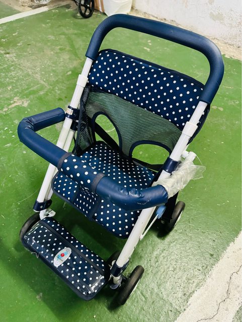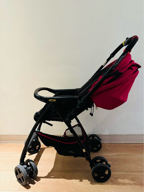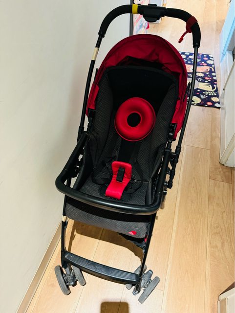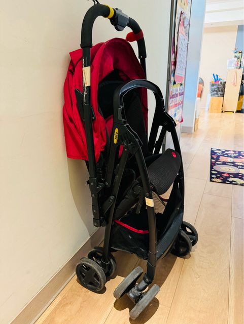 推車架構上有之前出國時的登記貼紙痕跡。遮陽傘有部分髒污我清洗不掉。