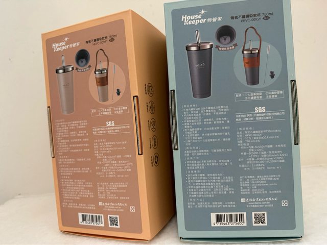 售全新HouseKeeper妙管家陶瓷不鏽鋼吸飲杯750ml,售300元,有2色可選(暖茶跟霧灰色)
