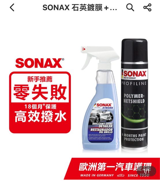 1. SONAX PNS石英鍍膜 (黑右瓶)買來鍍了一次整體用量還蠻多的,因平時照顧小孩也