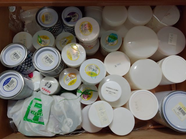 主要是日本等網購來的造花液、分裝用瓶罐、亮粉、稀釋液等。一年多沒用到,部分造花