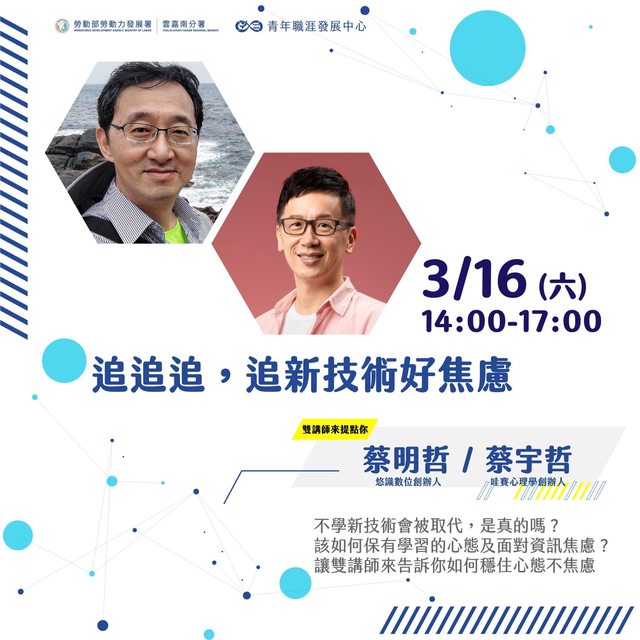 標題[活動] 青年職涯講座 追追追,追新技術好焦慮