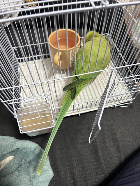 2/21晚間拾獲一隻綠月女孩,有腳環(樣式特殊)請來信提供腳環特徵為何