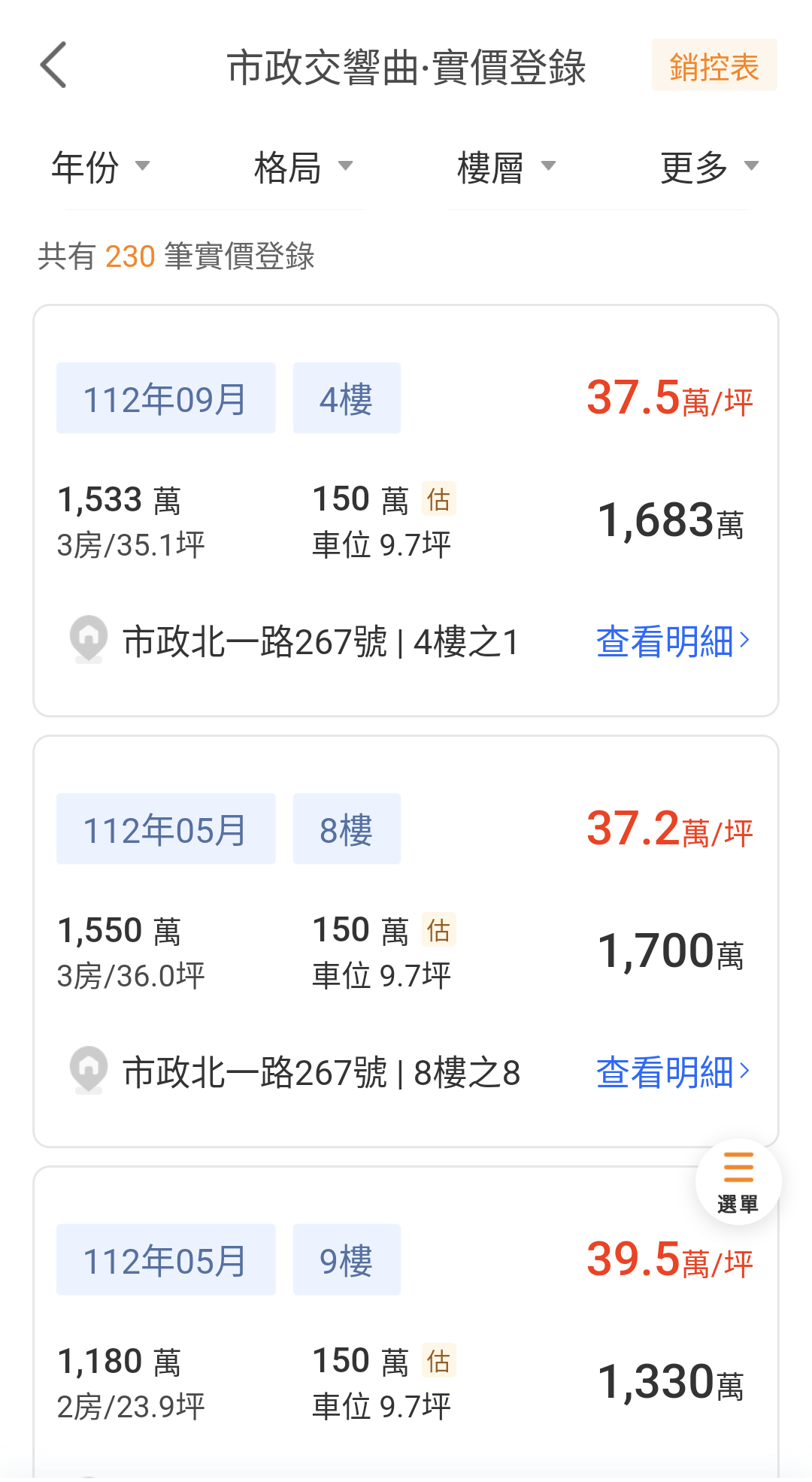 → jump0517: 不拆車位換算坪單價 因為自己挑投資案件最後都是看總價11/05 09:58