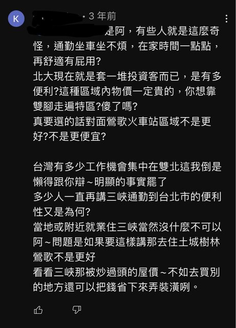 推 gadacha: 北大特區的居民大多以為自己自三峽的天龍人 看不起舊市區11/05 10:44