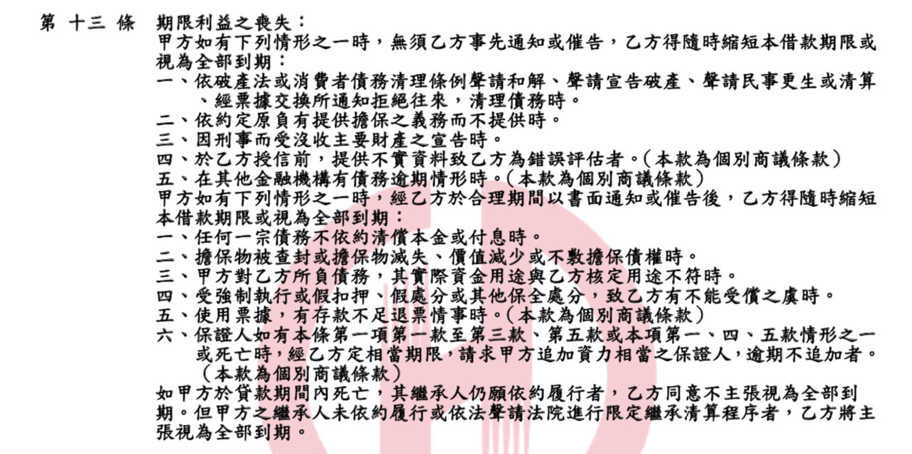 這就不知道了,但合約內是寫每一期款逾期30日經催告後則違約