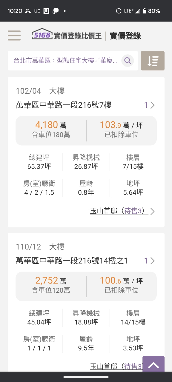 → Physerapb: 百狀況,實際來說萬華最近才有預售破百 11/09 12:09