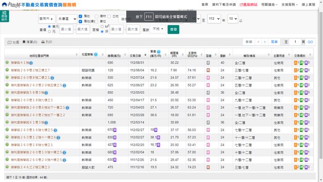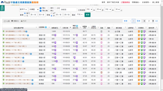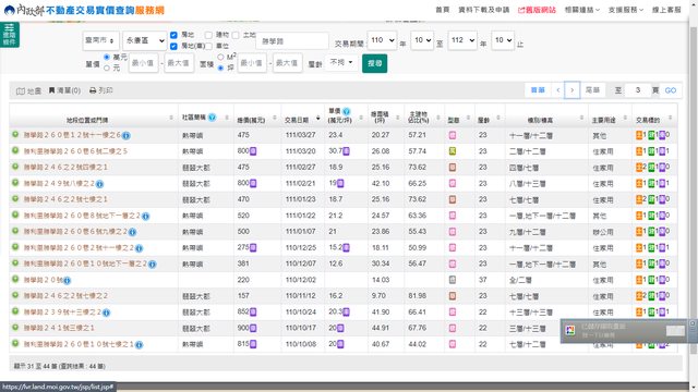 本物件地址實價登錄截圖: