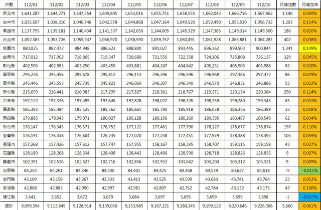 標題[閒聊] 2023年10月全國人口資訊