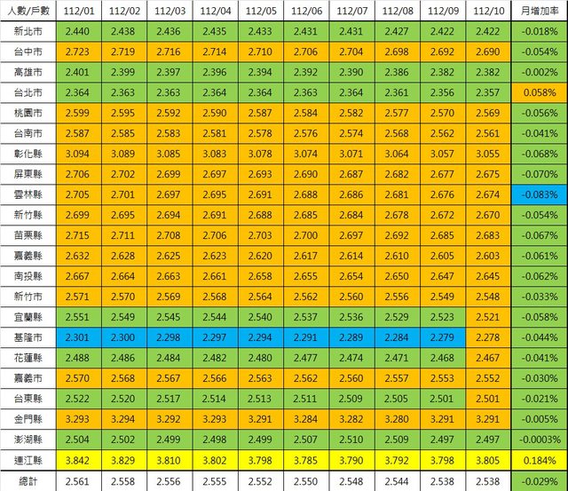 10. 基隆市:-61(-0.017%)