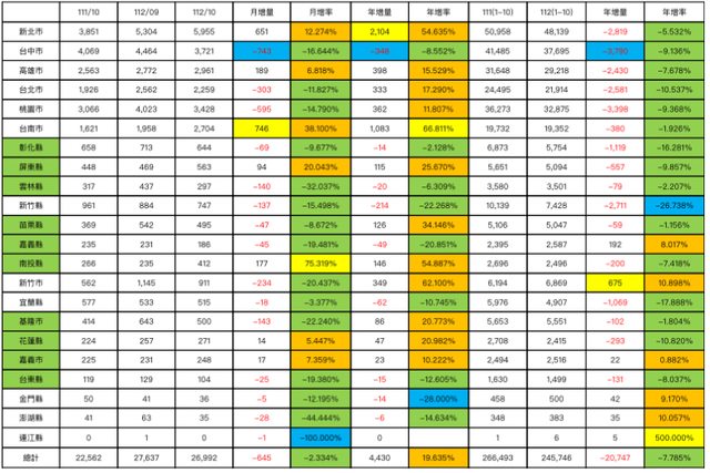 標題[閒聊] 2023年10月全國買賣移轉棟數