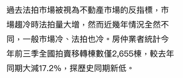 推 lefan: 前幾年微跌時想研究法拍屋,後來發現量太少,根本沒有意義 11/29 11:31