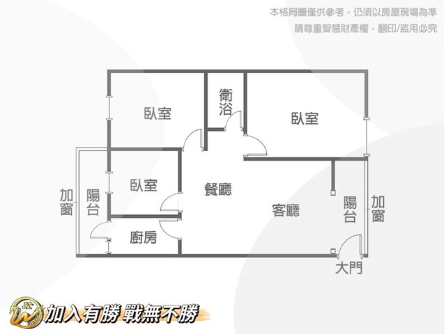 * 格局 : 3房2廳1衛2陽台