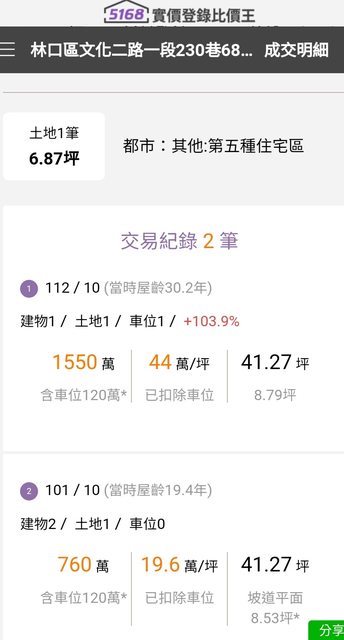 → kensmile: 林口這間,世紀大第,可以賣到44萬/坪,有點扯 12/02 23:28