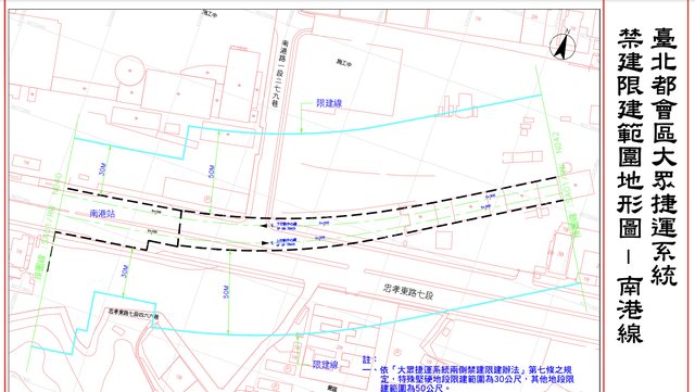 臺北都會區大眾捷運系統兩側禁限建範圍公告圖