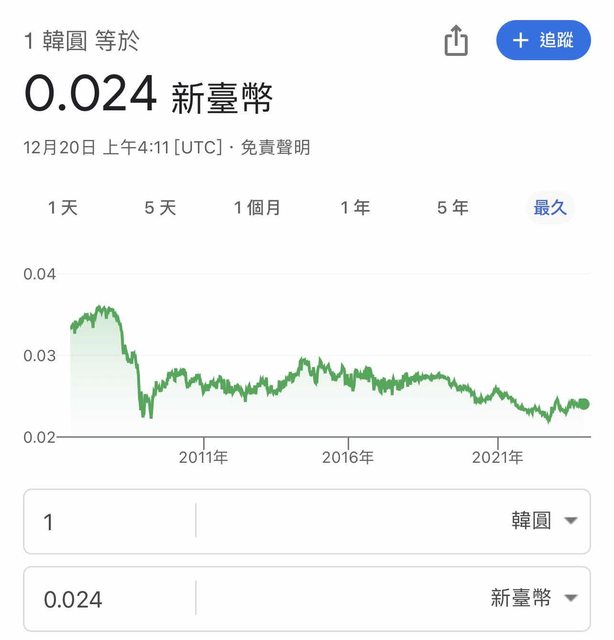 → TheDream: 歐元、日元、英鎊、加幣、韓元、澳幣兌台幣都是貶值 lol 12/20 13:41