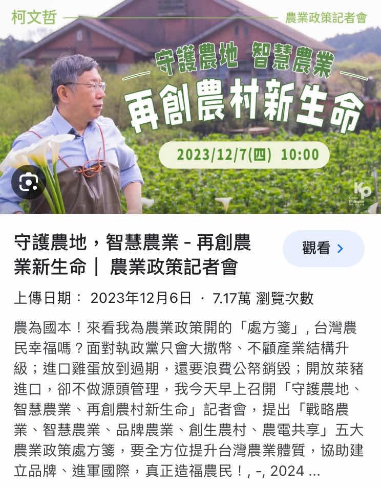 → getwild: 如果柯買農地不是為了炒地皮,那他的投資眼光還真不是普 12/20 21:03
