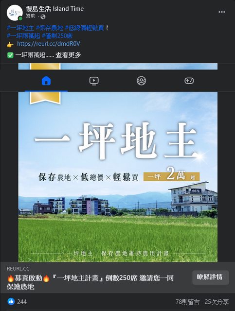 噓 xup654z: 看廣告不會點進去?主旨是募資認購友善耕作農地避免農地 12/22 10:56