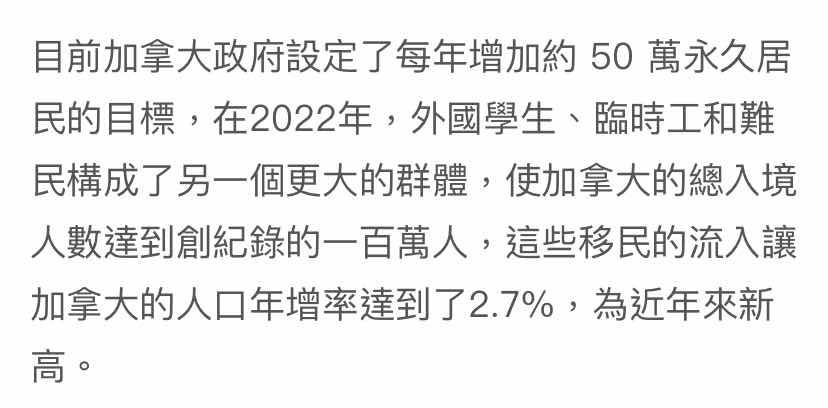 推 Mewtube: 加拿大單Q3就增加43萬人破歷史記錄,近期一年一百多萬人 12/26 00:06