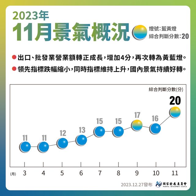 推 a123454698: 重回藍黃只是暫時性的,景氣領先指標連續下降,遲早會 12/28 12:53