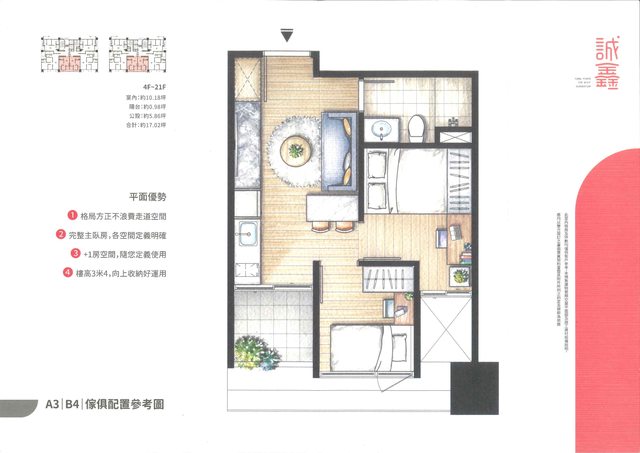 優點:央北少數設計兩房有雙衛浴以及設計室外機有額外格柵可放