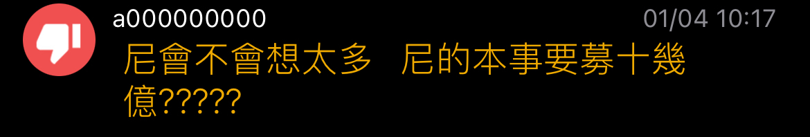 → TAKIHERO: 資搞投資的其實一直也很多,話術好幾個億破十億其實也真 01/04 17:19