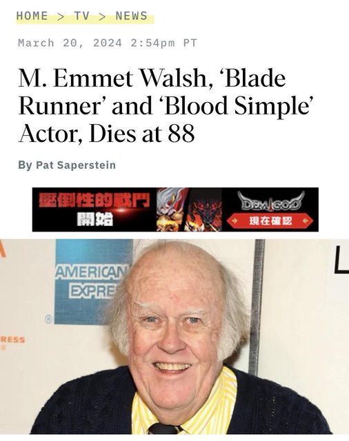 M. Emmet Walsh, ‘Blade Runner’ and ‘Blood Simple’ Actor, Dies at 88