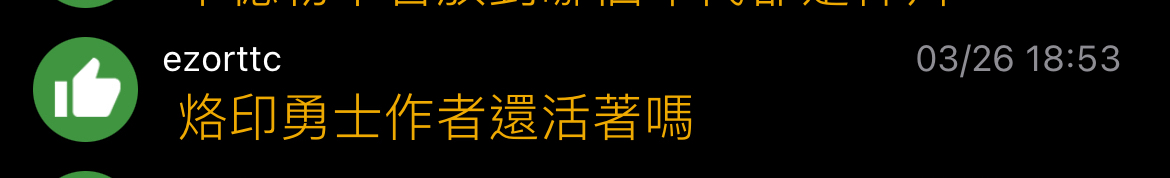 ezorttc : 烙印勇士作者還活著嗎 03/26 18:53