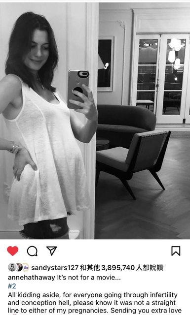 安海瑟薇分別育有8歲、4歲兒子,2019年宣布懷孕時,曾在IG發文寫道:「這不是