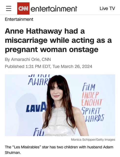 Anne Hathaway had a miscarriage while acting as a pregnant woman onstage
