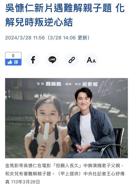 標題[新聞] 吳慷仁新片遇難解親子題 化解兒時叛逆心
