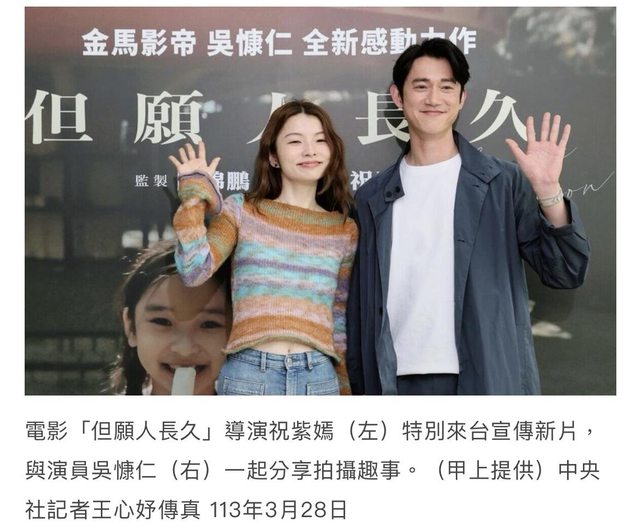吳慷仁跟祝紫嫣日前受訪分享拍攝「但願人長久」趣事,吳慷仁稱讚祝紫嫣雖然是