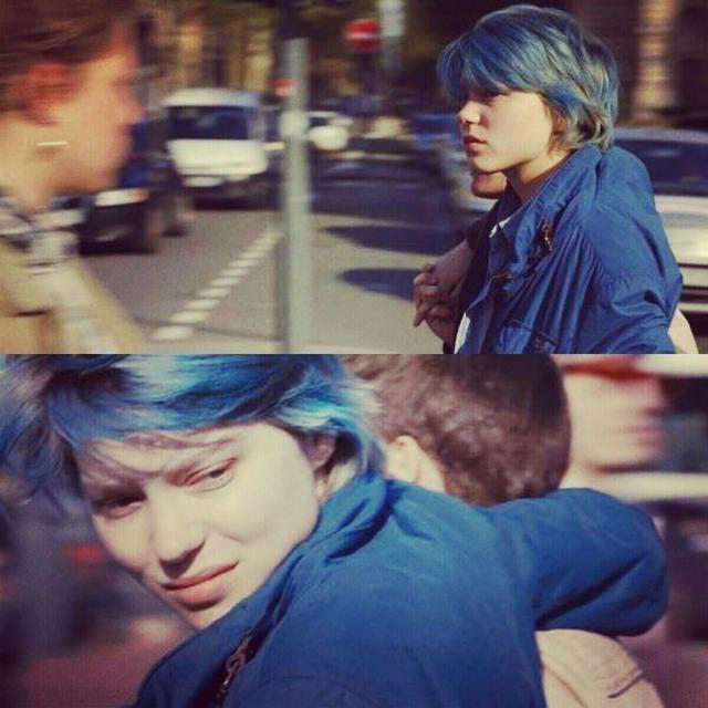過馬路被一頭藍髮的Emma吸引、一見鐘情。