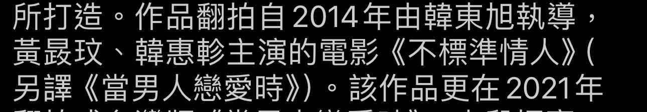 所打造。作品翻拍自2014年由韓東旭執導,黃晸玟、韓惠軫主演的電影《不標準情人》(