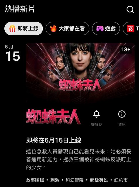 新聞網址: https://www.epochtimes.com/b5/24/5/28/n14258892.htm/amp 【大紀元2024年05月28日訊】(大紀元記者葉子杰編譯報導) 儘管《蜘蛛夫人》受到批評且票房慘淡, 14日在美國Netflix首映後持續一週登上榜首, 全球超過1,000萬人次觀看,直至24日《異星戰境》上映後退居第二,但人氣依舊未減, 暗示了超級英雄電影在串流媒體的潛力。 索尼的《蜘蛛夫人》(Madame Web)製作預算為8,000萬美元, 全球票房收入僅1億美元,不僅票房失利也受到許多人的批評, 在影評網「爛番茄」僅獲得了評論家11%的超低支持率,觀眾評分57%的低新鮮度。 據《CBR》報導,像《蜘蛛夫人》這樣反響不佳的超級英雄電影可能在串流平台上表現得更 好。 據報導,《蜘蛛夫人》的觀看流量很大一部分可能是因為觀眾的好奇心, 想看看這部電影是否真的像媒體報導的那樣糟糕。 不論有多少原因,它在美國Netflix上獲得成功與在電影院的表現形成了鮮明的對比, 這也說明了超級英雄電影在流媒體上能有成功的機會。 據《富比士》報導, 《蜘蛛夫人》在Netflix 上映的第一週英語版就獲得了全球超過1,000萬次觀看, 位居世界第二,如果依照正常電影票價約為12至13美元計算, 一週內將超過該電影的實際票房。與付費電影的觀眾相比之下, 部分原因在於串流媒體的電影內容多樣化,使得不同年齡及背景的觀眾更多。 此外,據《ComicBook》報導, 珍妮弗·羅培茲(Jennifer Lopez)主演的新太空科幻片《異星戰境》(Atlas) 24日在Netflix首映後立即擠下《蜘蛛夫人》在美國平台排名第一, 並且截至27日仍在全世界位居第一。不過,該片與《蜘蛛夫人》相似, 僅獲得影評網「爛番茄」評論家17%的超低支持率,觀眾評分53%的低新鮮度。 「爛番茄」評論員總評語:珍妮弗·羅培茲在《異星戰境》的震撼性場面中盡心盡力, 令人欽佩,但這部科幻奇觀在劇本的重壓下顯得力不從心, 而劇本的智慧也只是矯揉造作而已。 《IGN》評論:一部珍妮佛·羅培茲的動作片並不能解決人工智慧(AI)的論戰, 但它能給我們帶來片刻的歡樂。不過我們要明確一點: 他也沒有消除人們對人工智慧威脅無數行業或其對環境影響的擔憂。 《Variety》評論:導演布萊德·派頓(Brad Peyton) 未能將這一人工智慧末日創意的集大成, 打造成一場值得投資的冒險。 缺乏原創性的想法削弱了《異星戰境》的吸引力,讓羅培茲不得不努力演出, 就像她的角色在套話連篇的電影故事中不得不自力更生一樣。 —— 沒想到《蜘蛛夫人》要在6/15上架Netflix(台灣地區)耶! 真的好興奮!順便呼應一下標題,分享了這篇篇報導 https://i.imgur.com/ZBJeL1y.jpeg