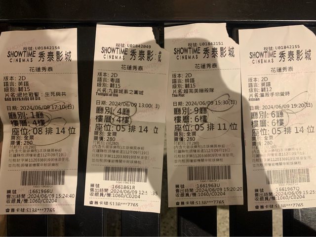 電影票好像現在都改成這種熱感應紙了,以後要蒐藏電影票只能線上購票了。嗚嗚,花蓮
