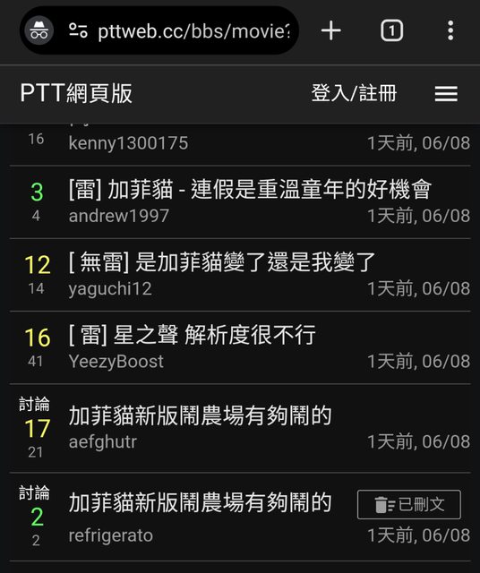 週六晚上在找電影板文章時無意間看到下圖情況 https://i.imgur.com/Huv4fHx.png