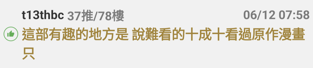 Lachdanan : 當然也是有看過漫畫也覺得好看的觀眾啦 06/12 14:25